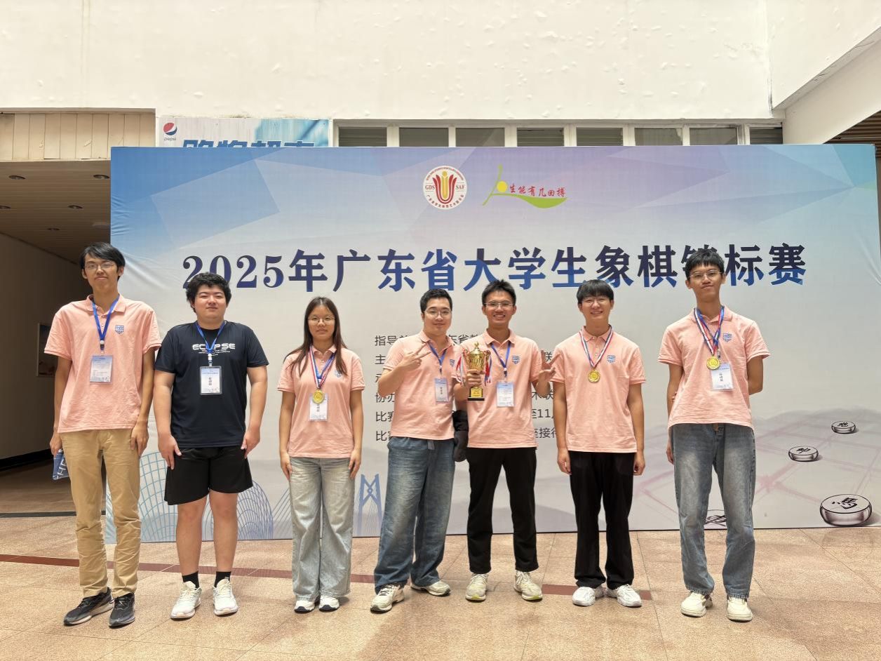 2025年10月31日-11月2日,由广东省教育厅指导,广东省学生体育艺术联合会主办的2025年广东省大学生象棋锦标赛在珠海市哈工大举行。本次比赛吸引了广东省各高校的众多棋类爱好者参加,在象棋项目中上演了一场兼具竞技魅力与文化底蕴的智力对决。深圳技术大学代表队由李真院长为领队,黄佳老师为教练,共计7名象棋校队队员参赛。经过两天七场的竞技,深圳技术大学取得团体赛亚军的历史性突破。其中,来自集成电路与光电芯片学院的严惠文同学、城市交通与物流学院的陈胜斌同学分别获得象棋男子组个人第三名、第七名,来自中德智能制造学院的李欣妍同学获得象棋女子组个人第六名,充分展现出深技大学子高超的竞技水平和顽强拼搏的精神风貌。